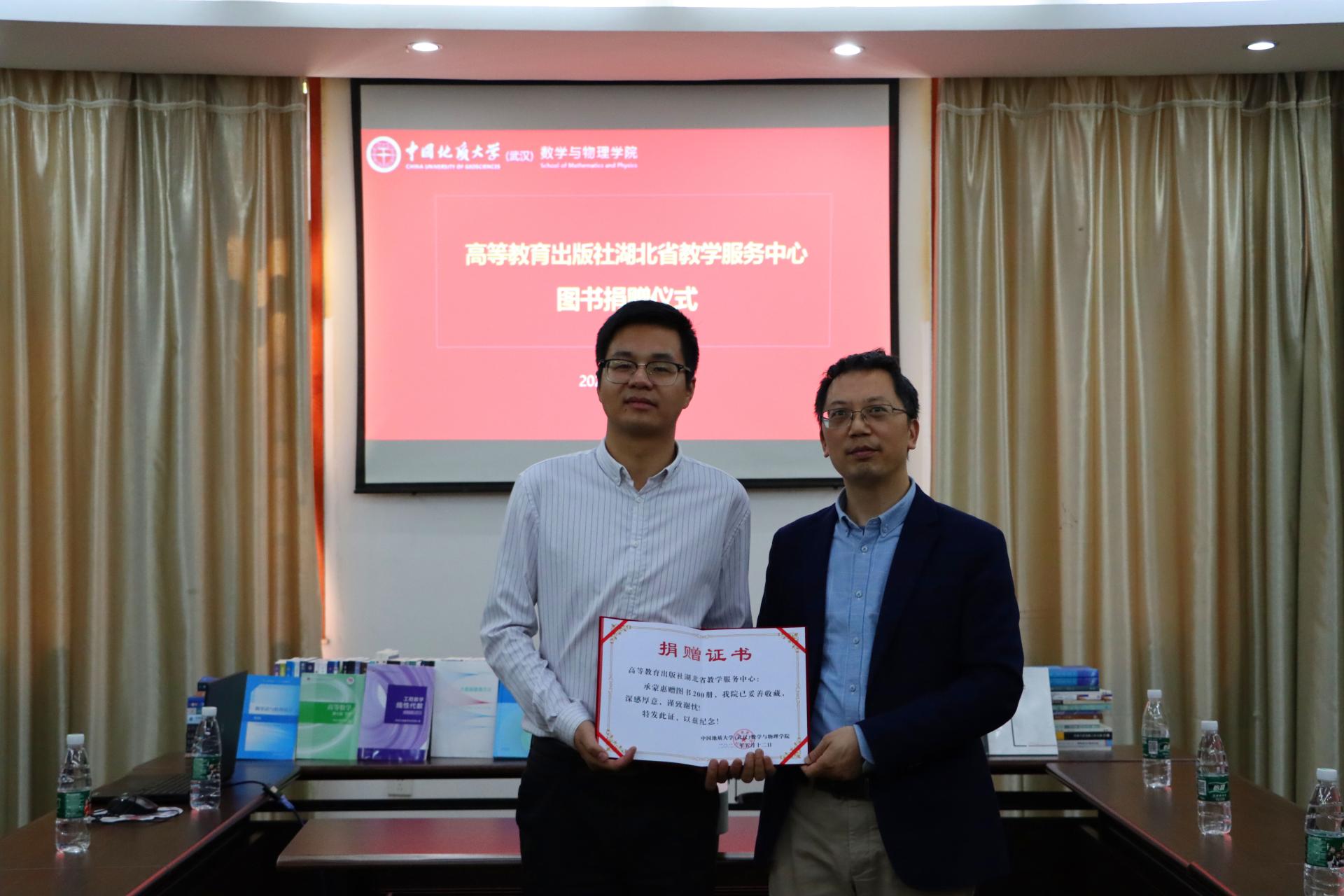 5月12日下午,高等教育出版社湖北省教学服务中心副主任叶望一行来中国地质大学(武汉)数学与物理学院调研交流,并向学院捐赠图书200余册。捐赠仪式在迎宾楼第四会议室召开,开云官网副院长黄刚等参加仪式。