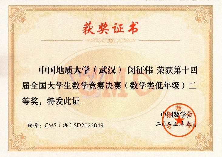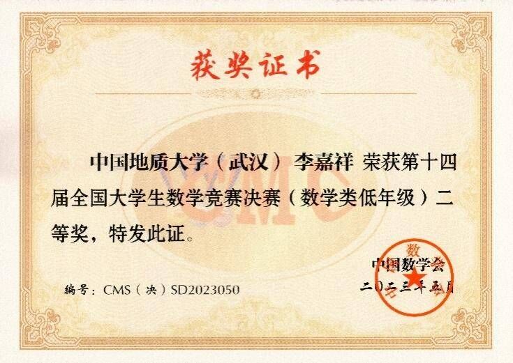 开云官网121211班(数学菁英班)闵征伟、李嘉祥两位同学在第十四届全国大学生数学竞赛决赛中双双荣获二等奖。