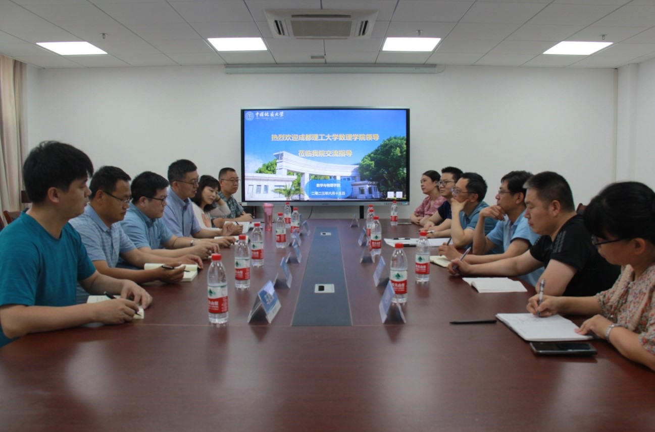 2023年6月15日下午,成都理工大学开云kaiyun官方网站副院长张传瑜、基础数学教学部主任余海洋、基础数学教学部支部书记舒畅、大学物理教学部副主任史顺平、田荣刚等一行来开云官网进行工作交流。学院副院长黄刚、副院长张光勇、大学物理教学部主任陈琦丽、数学系主任王毅、大学数学教学部主任郭艳凤、物理实验中心主任何开华出席了此次会议。会议由副院长黄刚教授主持。