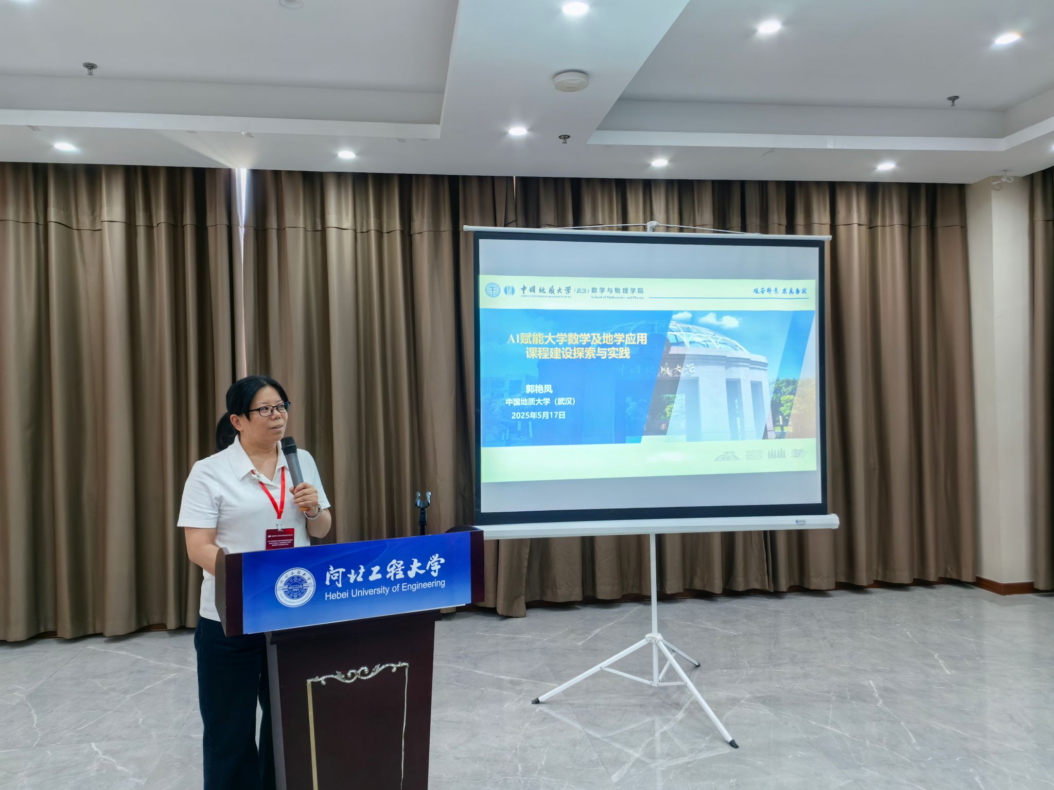 数学与物理学院副院长郭艳凤教授应邀出席授牌仪式,并在大会作了《AI赋能大学数学及地学应用课程建设探索与实践》的主题报告,分享了我校在AI赋能大学数学教育教学中的主要做法和举措,并与参加会议的各高校教师进行了热烈的交流和探讨。