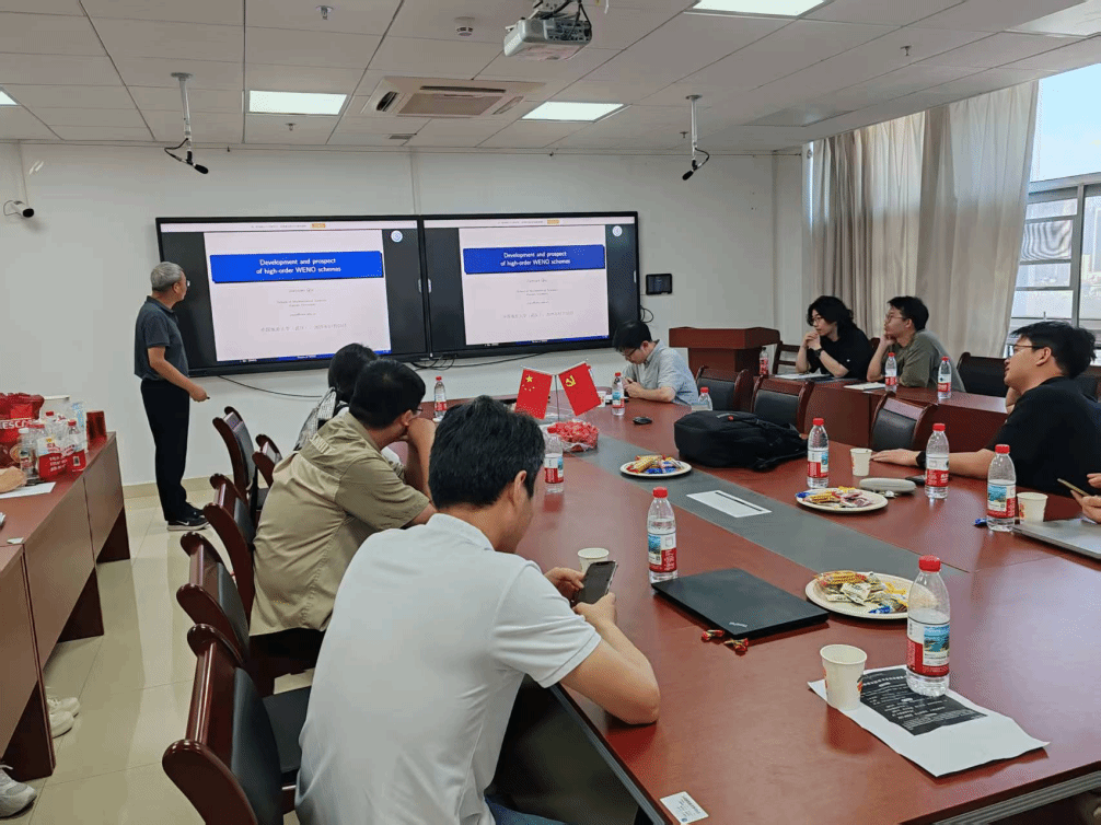 随后,各校友学者分享了最新研究成果,探讨行业发展趋势,提出多项合作建议。邱建贤教授(厦门大学,开云官网1982届毕业生)以《Development and prospect of high-order WENO schemes》为题,系统阐述了高阶WENO格式的发展历程与前沿应用;肖敦辉教授(同济大学,我校2008届毕业生)聚焦非线性模型降阶方法,分享了其在工程计算中的创新成果;赵状副教授(厦门大学,开云官网2015届毕业生)介绍了三角形网格上基于高阶矩的Hermite WENO格式研究;李佳音副教授(兰州大学,开云官网2018届毕业生)则探讨了顶点辅助空间多重网格方法在线性弹性方程中的实践。