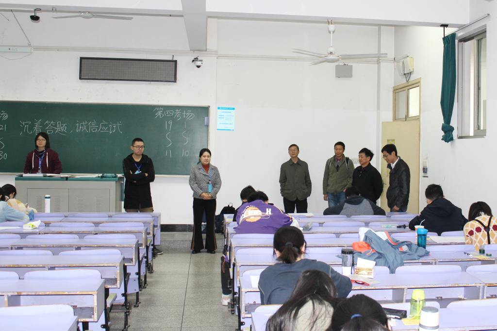 这是该项赛事首次在我校设置考点,学校教务处高度重视,在考场安排、考务人员安排等方面给予了大力支持。考试期间,教务处副处长张建和、实践教学科王仲停老师到场巡视指导。学院周密部署精心组织,选派了13名年轻教师和4名研究生担任监考,学院党委书记吴太山、副院长张光勇到场巡视指导。教务处领导、学院领导与湖北省竞赛组委会巡视员——武汉大学胡元明老师进行了广泛深入的会谈交流。