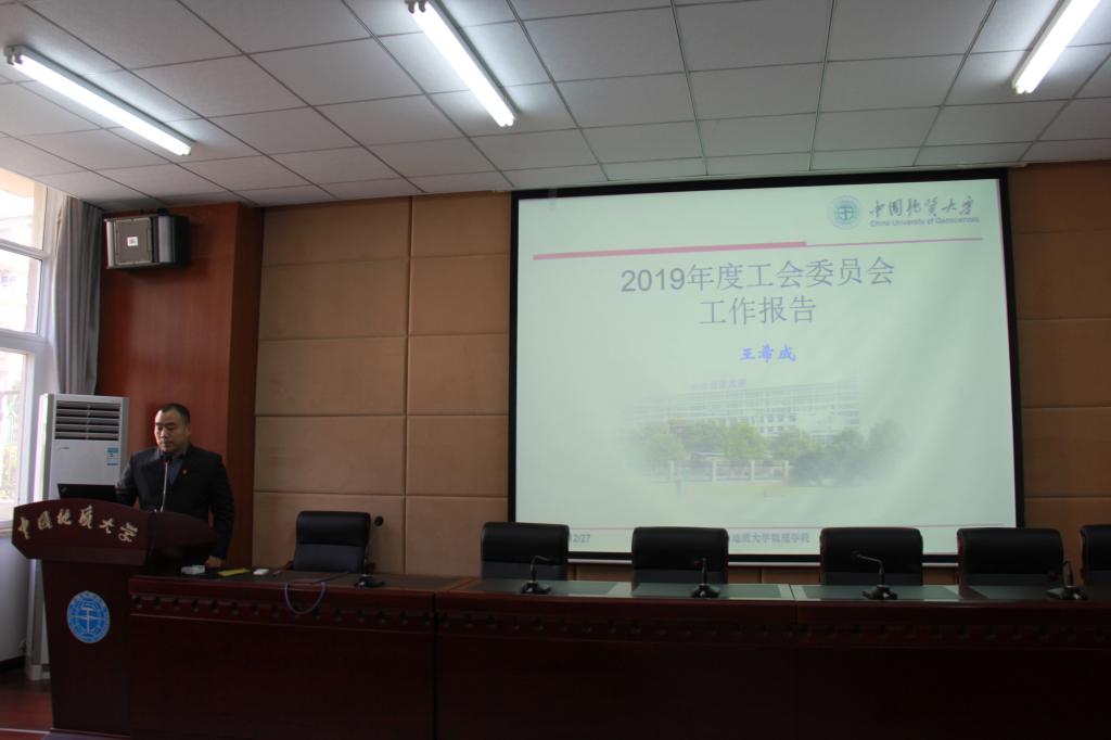 学院分工会主席王希成代表工会委员会做了工会年度工作报告及经费使用说明。他在报告中回顾了2019年工会工作以及学院工会在学校各项比赛中取得的成绩,号召全院教职工和工会会员要认真学习贯彻党的十九大、十九届四中精神,以习近平新时代中国特色社会主义思想为指导,深入研讨实施《数学学科特区建设实施方案(2020-2023)》,进一步推进落实学院“十三五”规划,充分发挥主人翁精神,弘扬“严在地大”优良传统,抓住机遇,迎难而上,为完善学院治理体系,提高学院治理能力,促进学院各项事业迈上新水平、出现新局面而努力奋斗。
