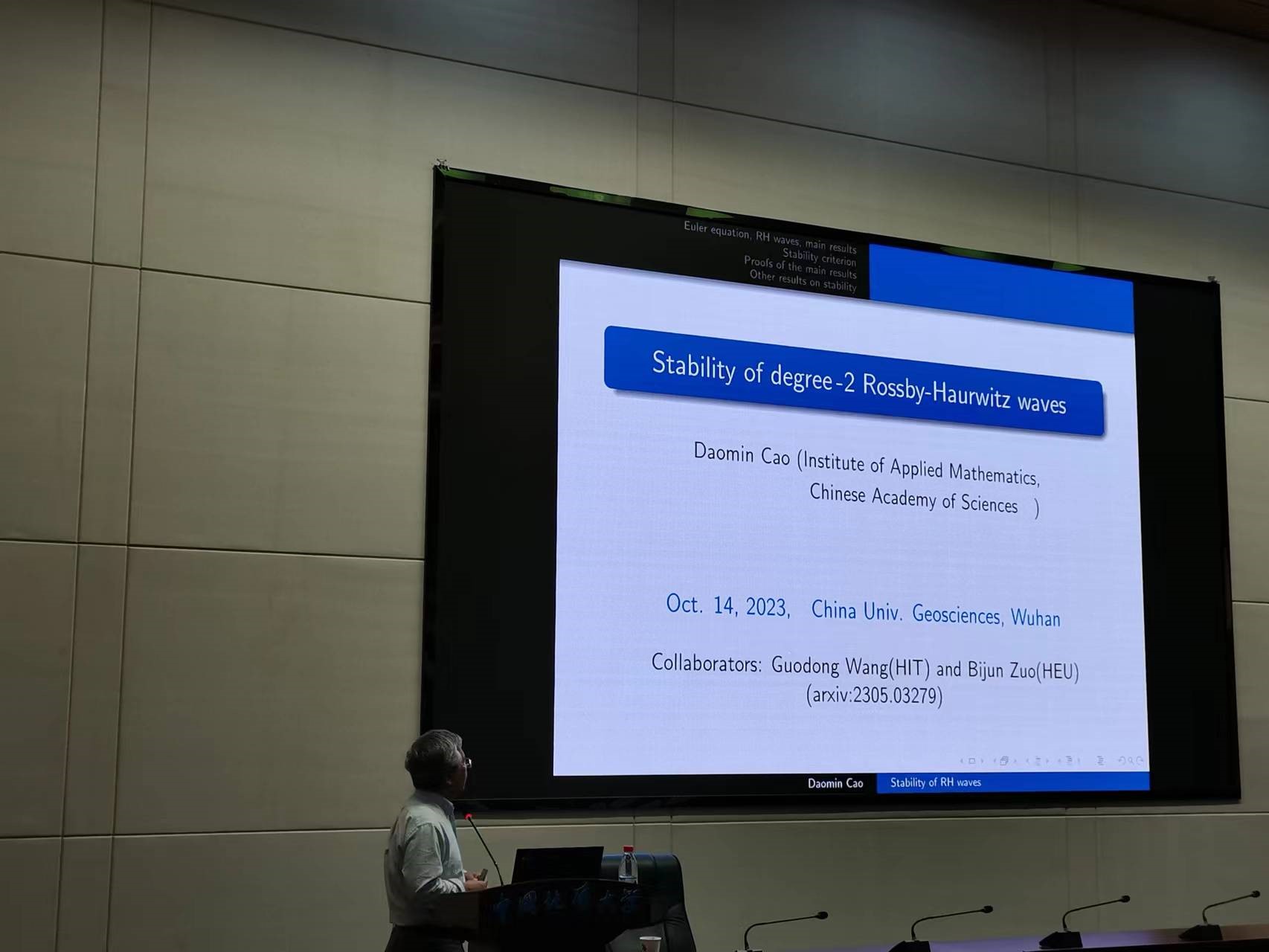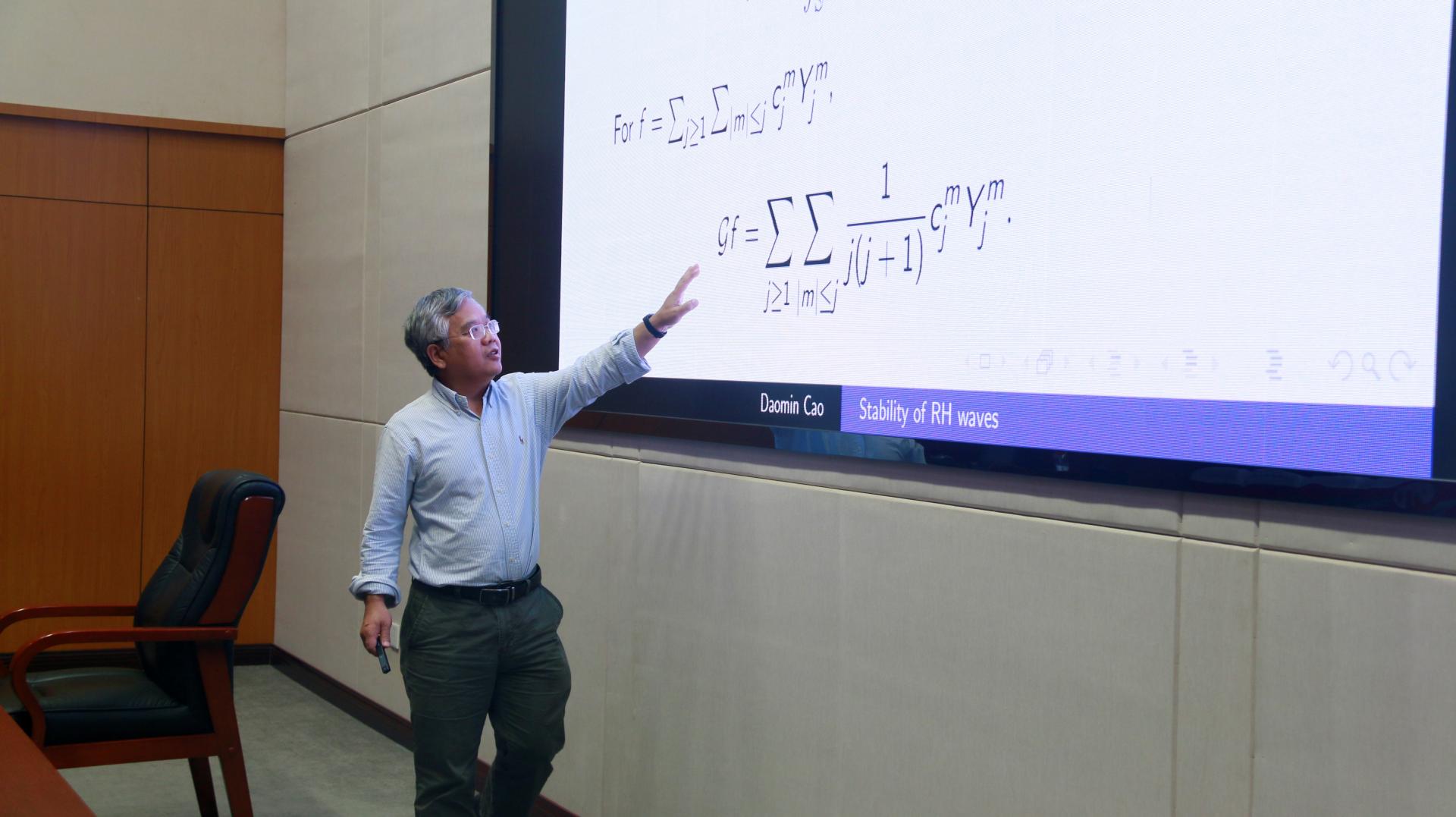应中国地质大学(武汉)数学科学中心和开云kaiyun官方网站邀请,国家杰出青年基金获得者、中国科学院数学与系统科学研究院研究员曹道民于2023年10月14日为中国地质大学名家论坛做了题为“Rossby-Haurwitz波的稳定性”的学术讲座,开云官网相关研究领域的老师和学生参加了本次学术讲座。